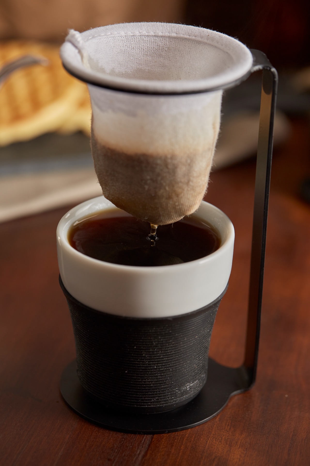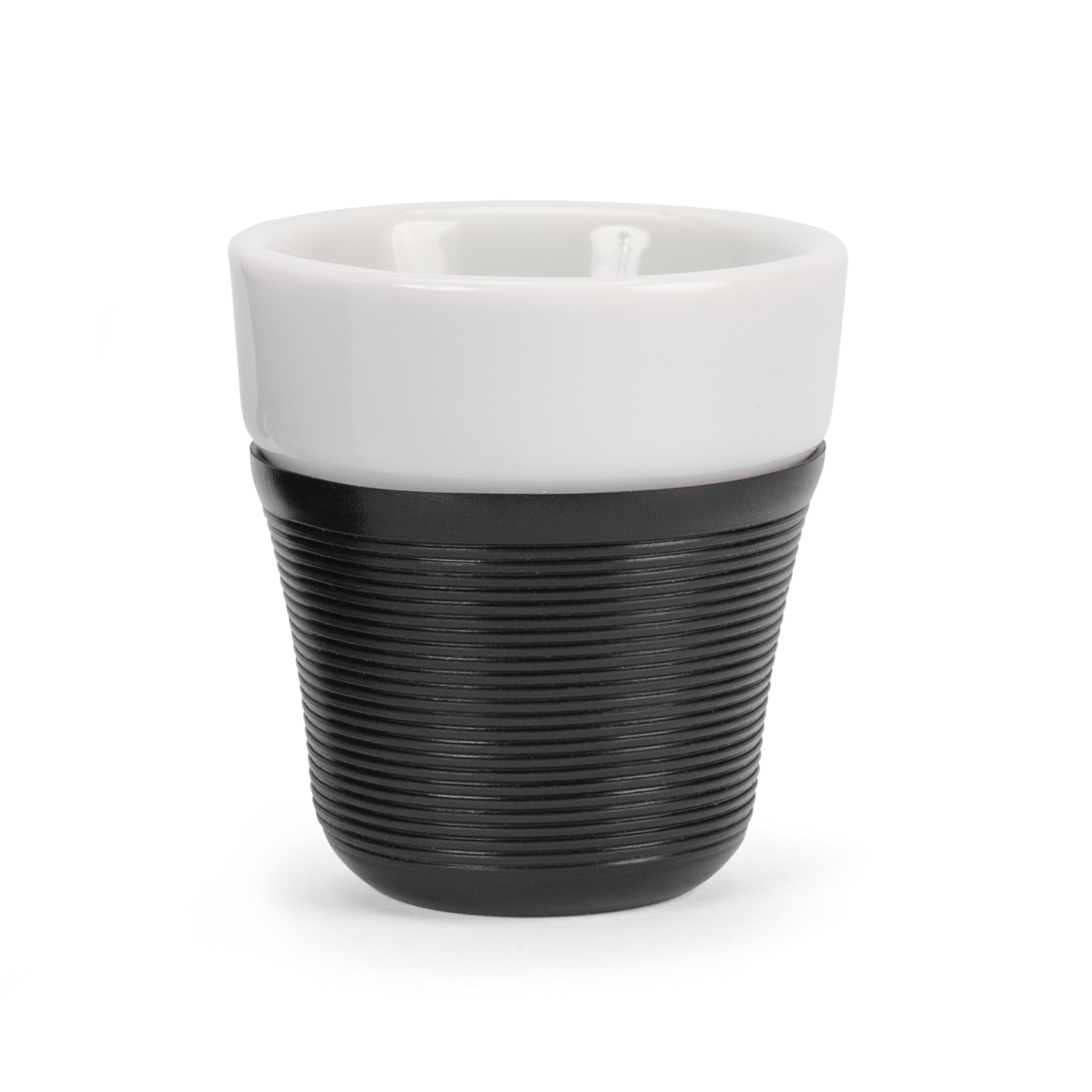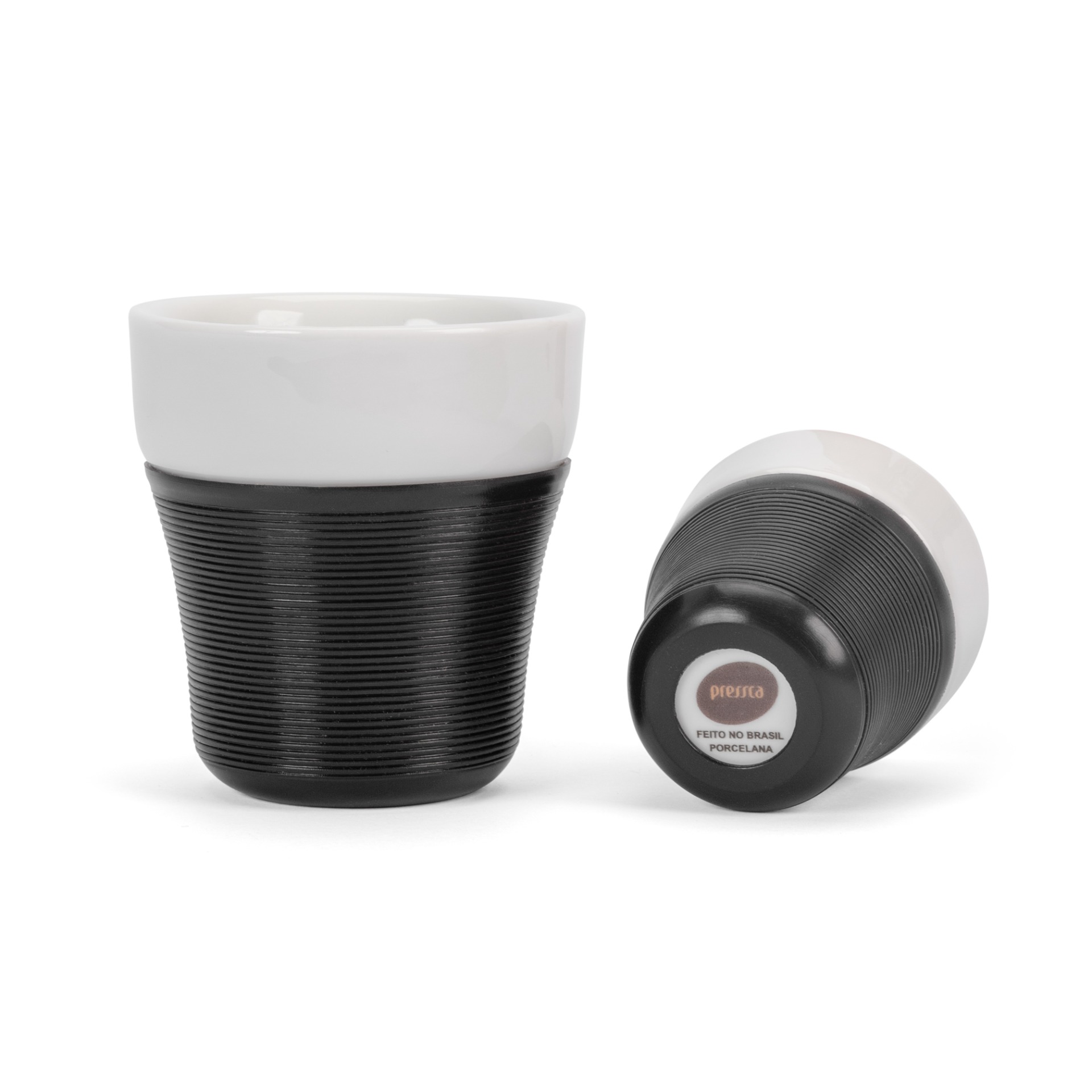 Copo de porcelana emborrachado Pressca duas cores, branco e preto. Lindo e elegante!